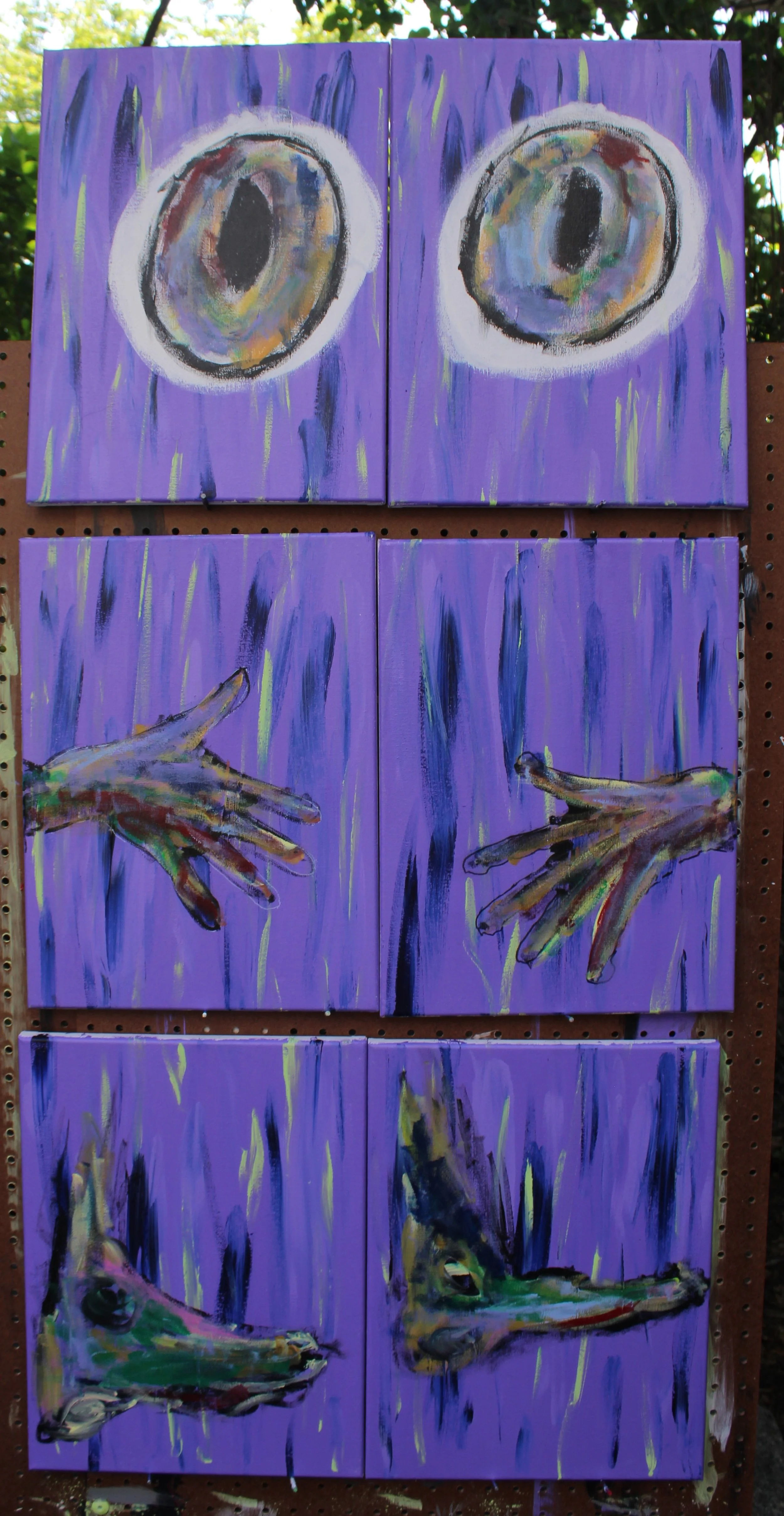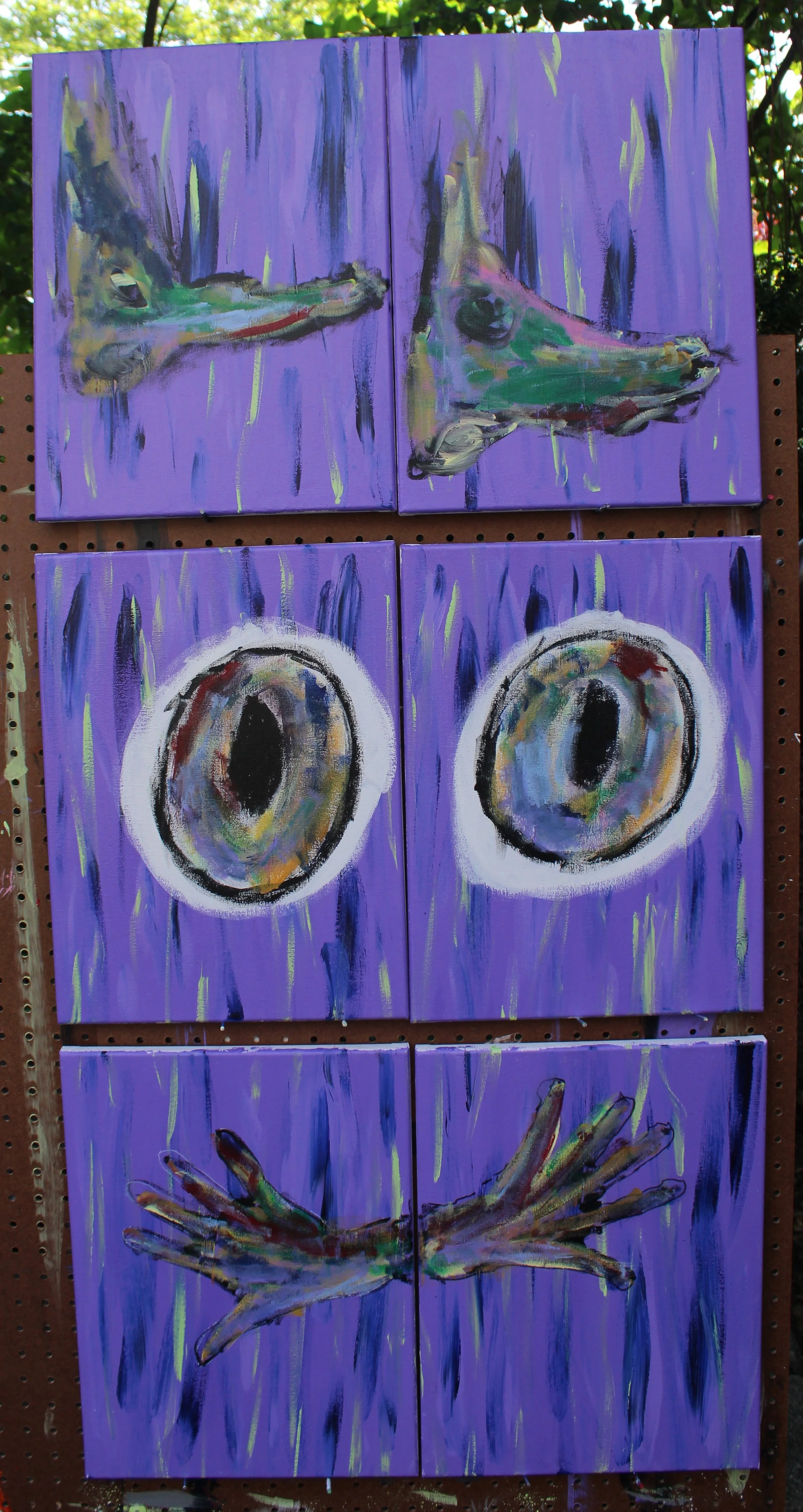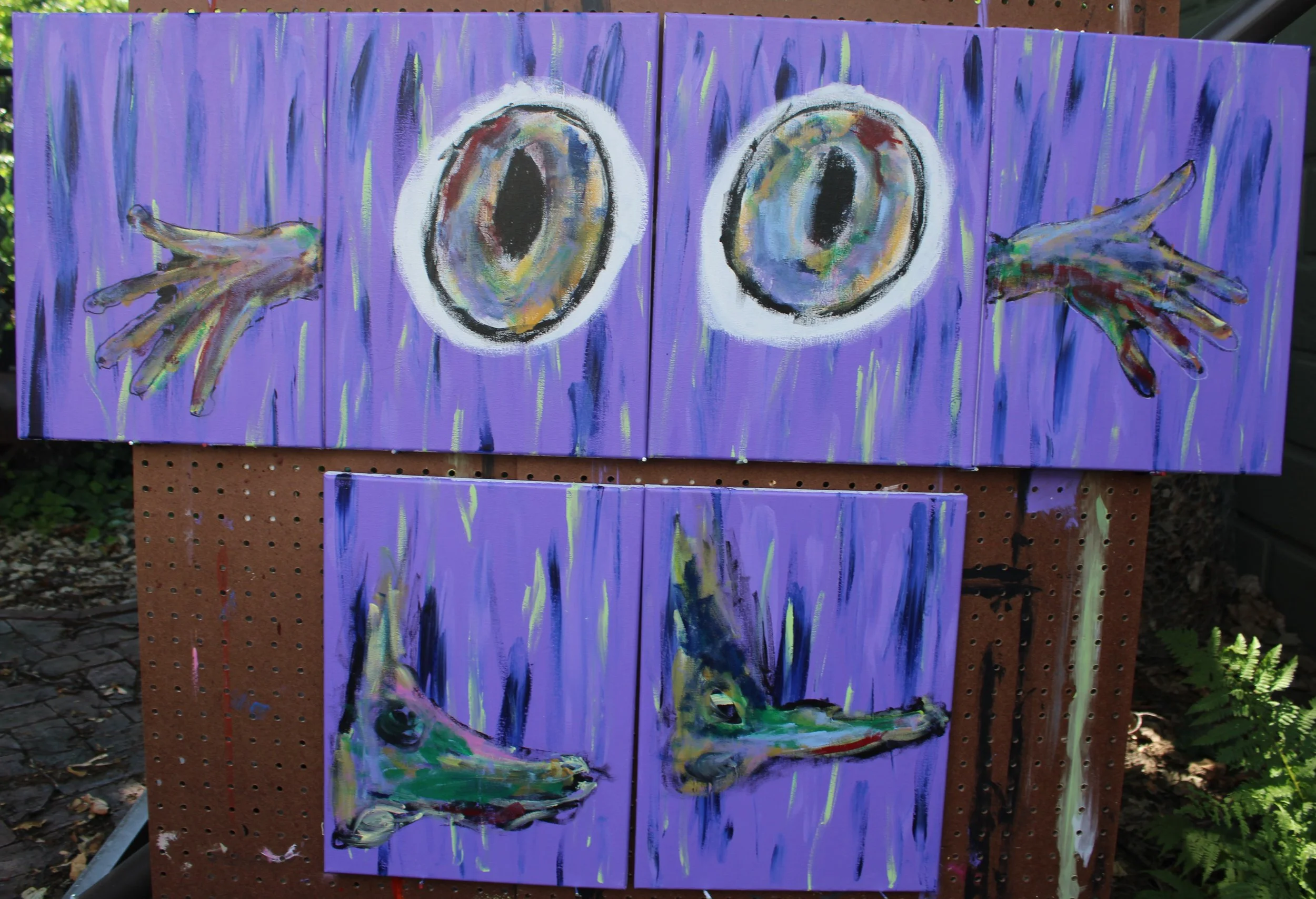 giraffe, multiple panels canvas panel, wood, canvas paper acrylic