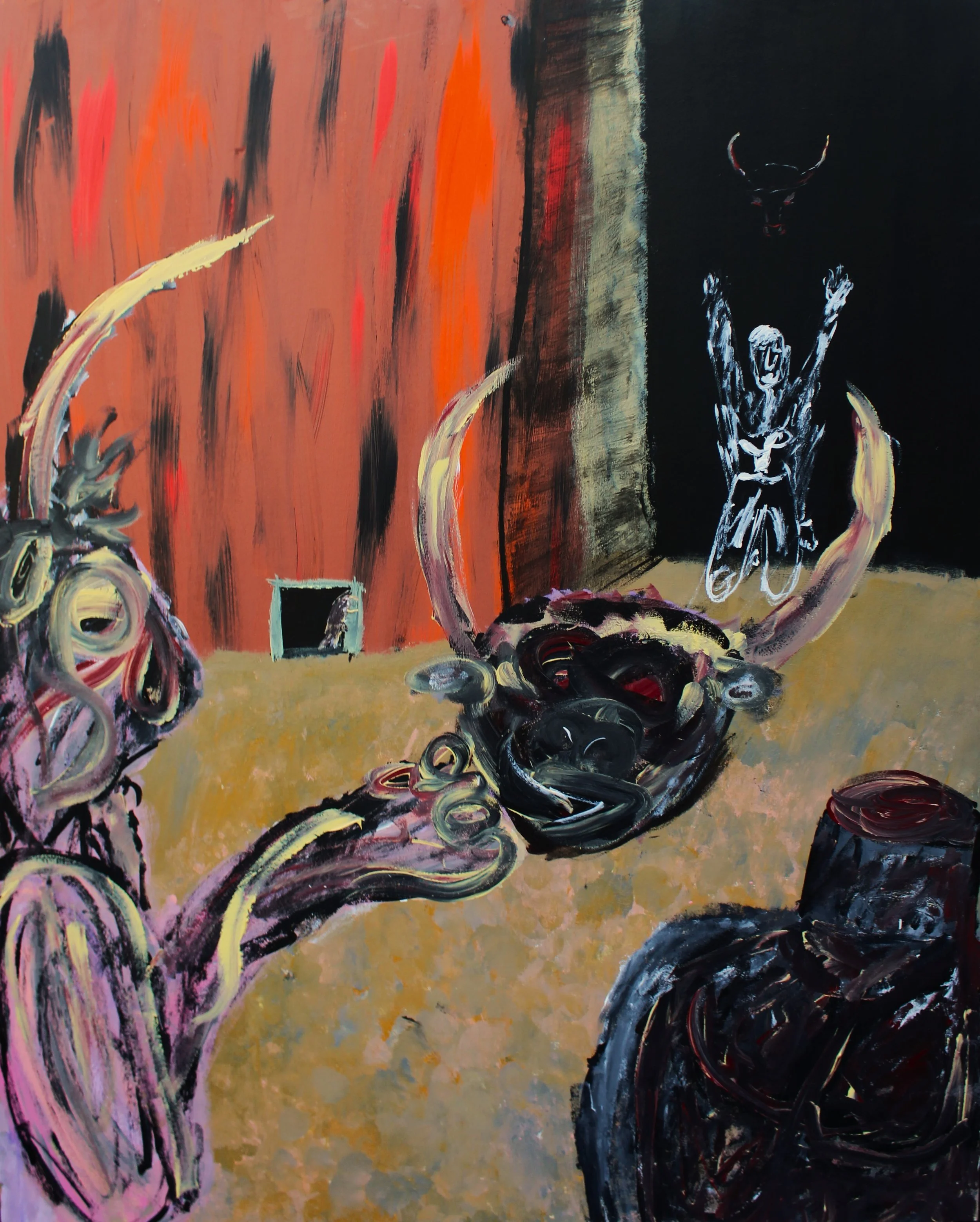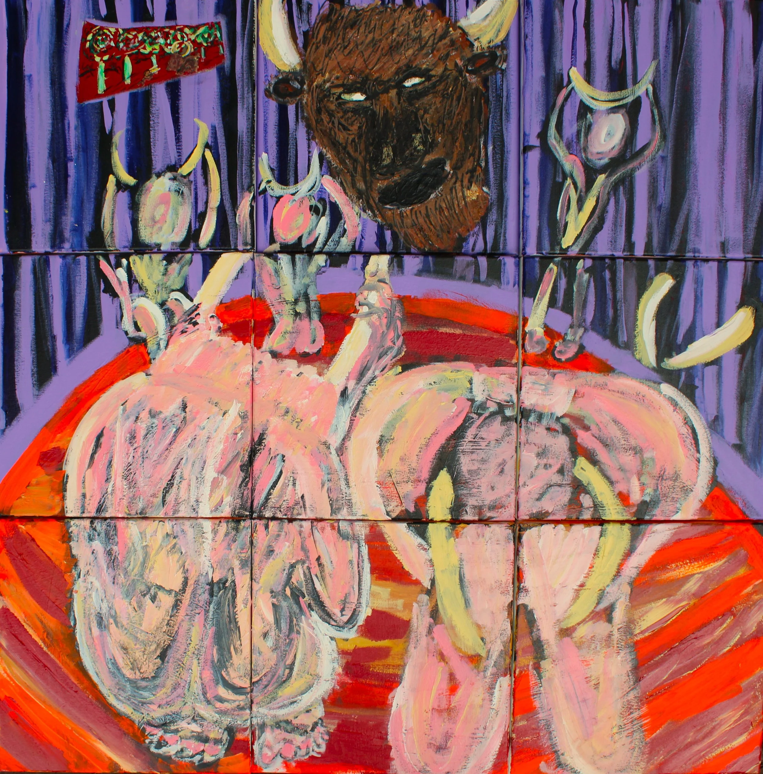 maze of mind: portrait of minotaur 16x20 canvas panel acrylic