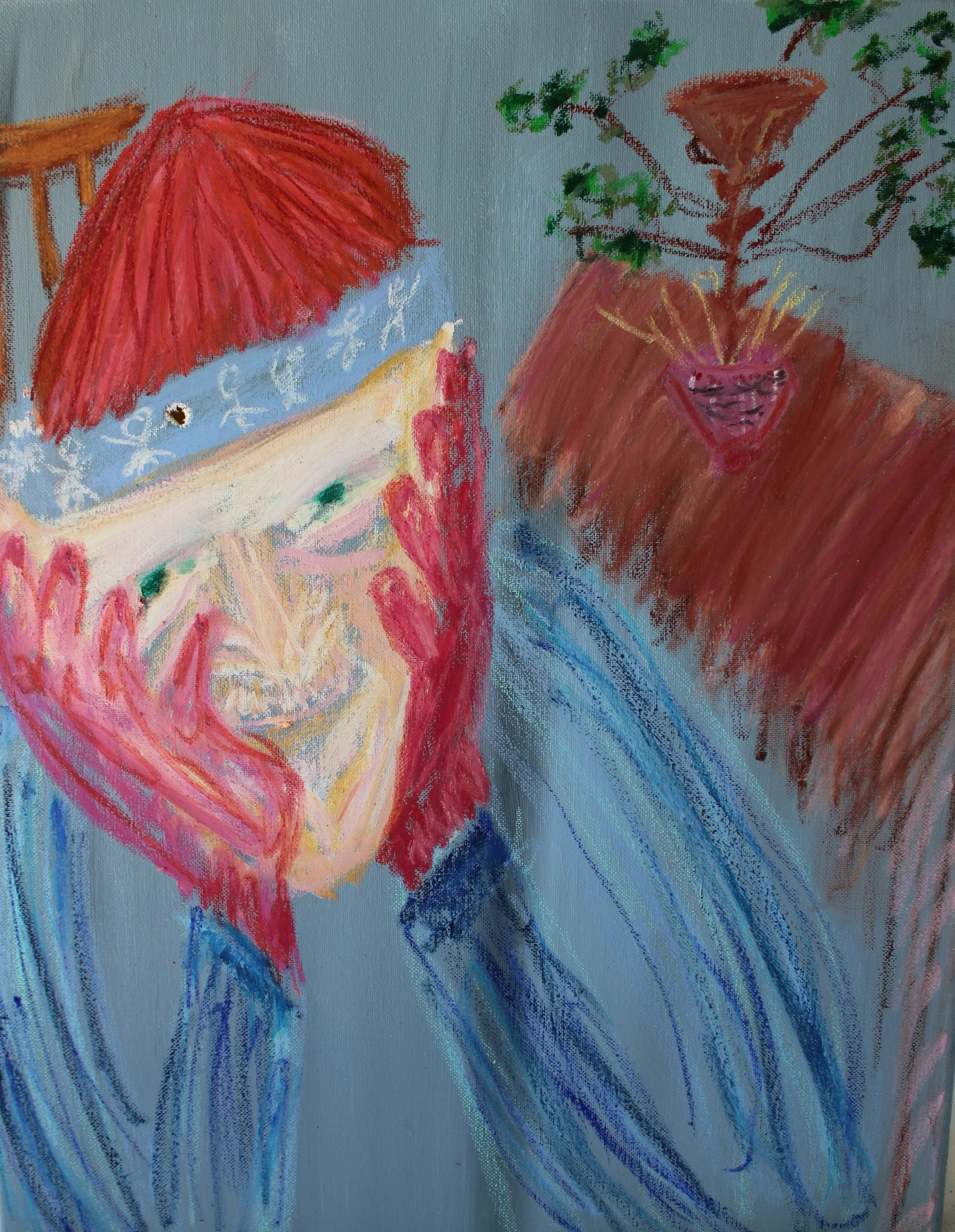 self-portrait ii 16x20 canvas acrylic, oil pastel